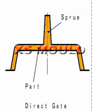 More than 90% with cold runner system, rest with hot runner system. Usually paint bucket mould designed with cold runner directly gate, sprue directly on the part. Below picture as an example.